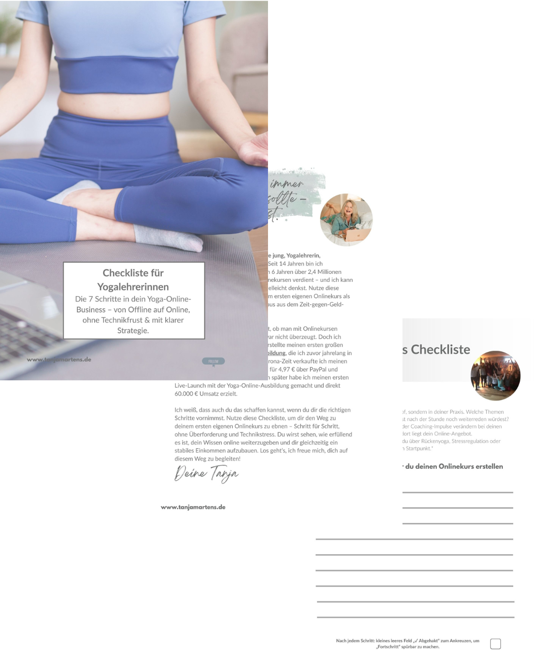 Hole dir jetzt deine Checkliste für Yogalehrerinnen - Die 7 Schritte in dein Yoga-Online-Business – von Offline auf Online, ohne Technikfrust & mit klarer Strategie für 0€ und komme endlich in die Umsetzung!